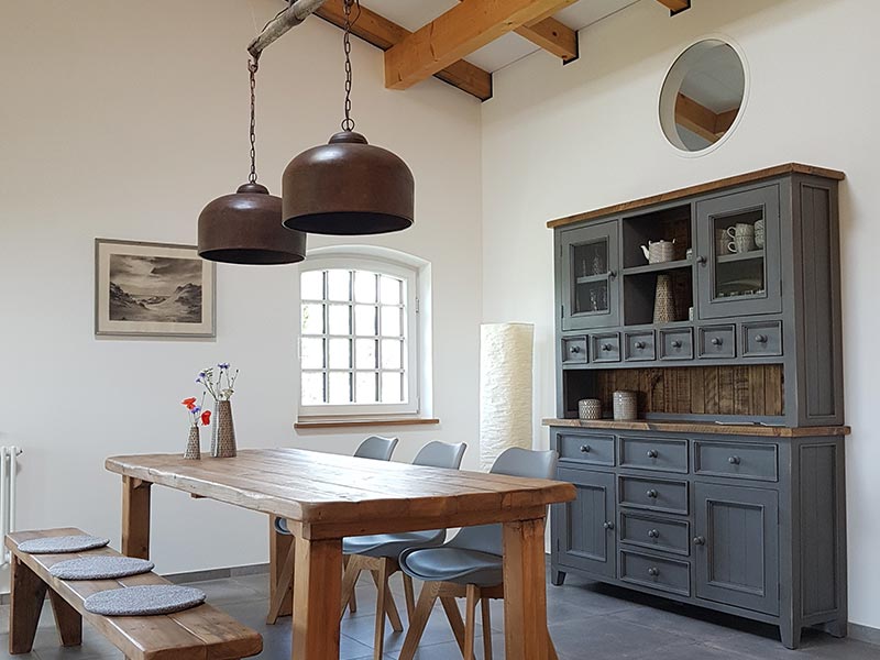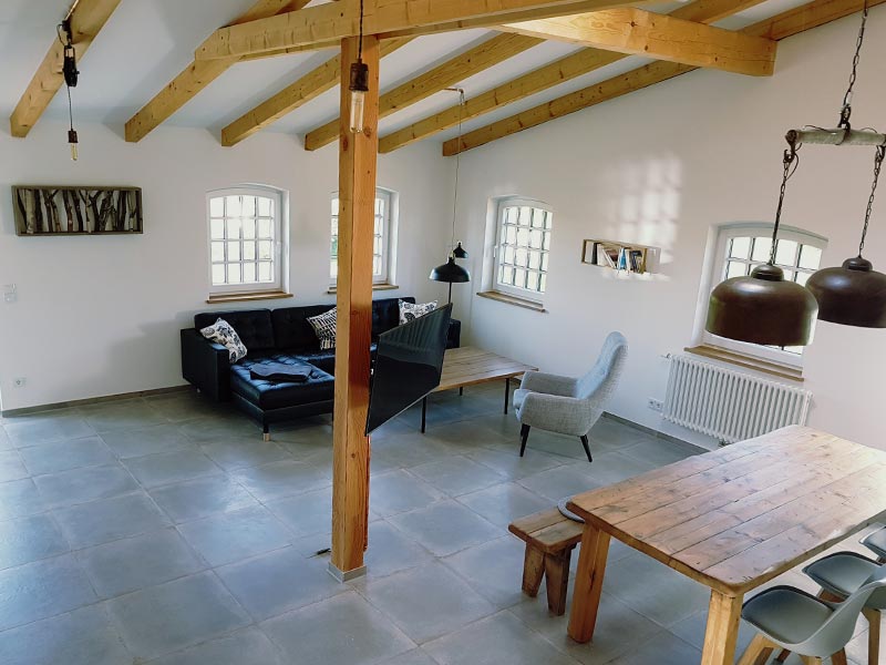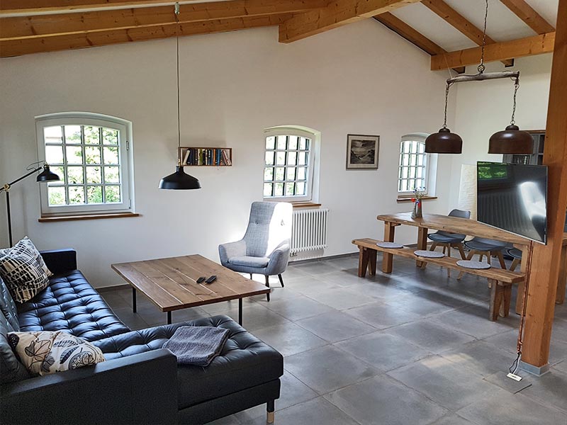 Idylle pur, klingt kitschig, ist aber so... Zwischen Wiesen und Feldern, unweit Nienhagen und Rethwisch, können Sie in einer ausgebauten Scheune mit großem Garten richtig abnschalten. Auf 85 m² gibt es zwei Schlafzimmer, ein Bad mit Dusche und eine Wohnküche mit begehbaren Podest.