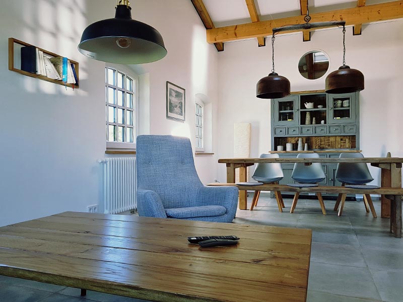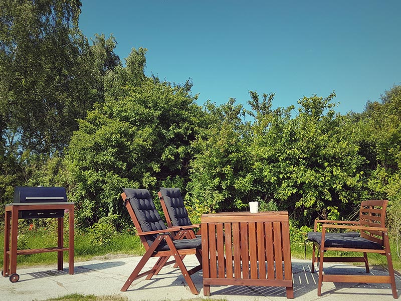 Geraucht werden darf gerne im Garten und auf dem Podest vor dem Eingang. Hier kann man wunderbar mit Blick über die Felder und einem Glas Wein den Sonnenuntergang genießen. In der Wohnung herrscht jedoch absolutes Rauchverbot.