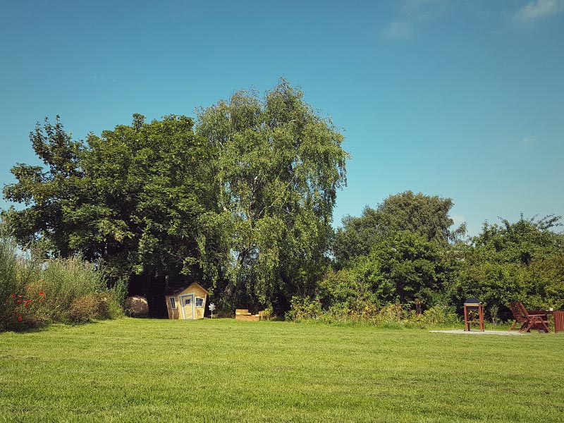 Unseren Gäste haben ihren eigenen Gartenbereich von qm. mit Sandkasten, Grillecke und großer Grünfläche. Wer zur richtigen Jahreszeit kommt kann sich an Himbeeren, Rhabarber, Erdbeeren, Kräutern und allem was was dort wächst bedienen.